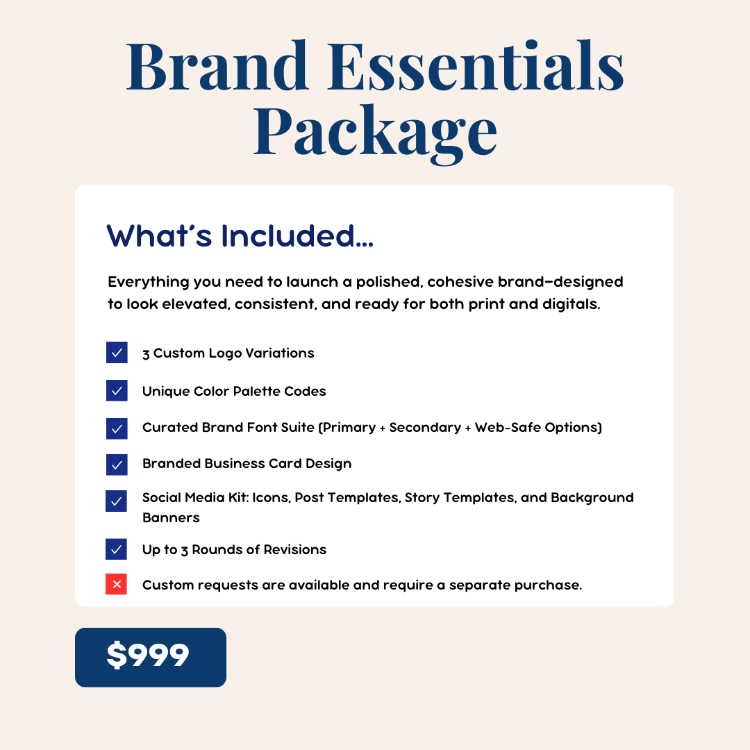 Purchase the package to reserve your brand, or email info@brandingbubble.com with any questions before buying—we’re happy to walk you through the details and help you create a brand that feels elevated, intentional, and truly yours.